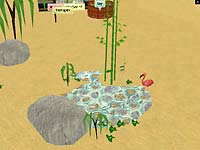 In the Calderan desert, an oasis has appeared containing (amongst other things) the first flamingo I’ve seen in There with its feet in water…